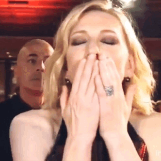 - The Blanchett look – the fringe, the earrings, the makeup – very Jersey.